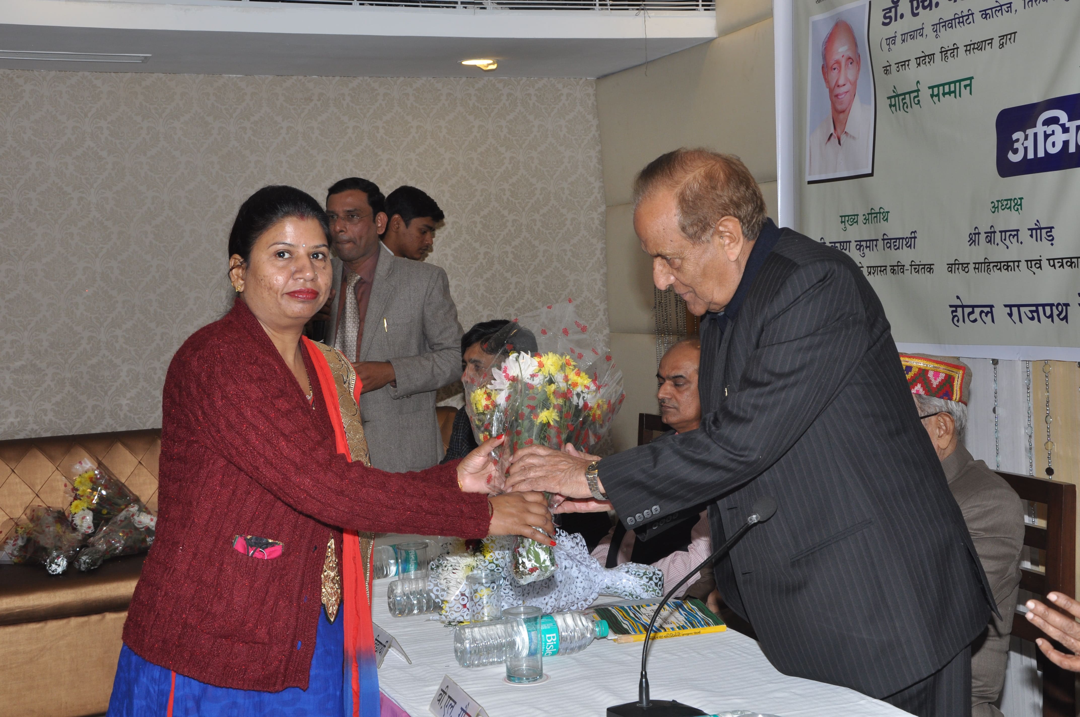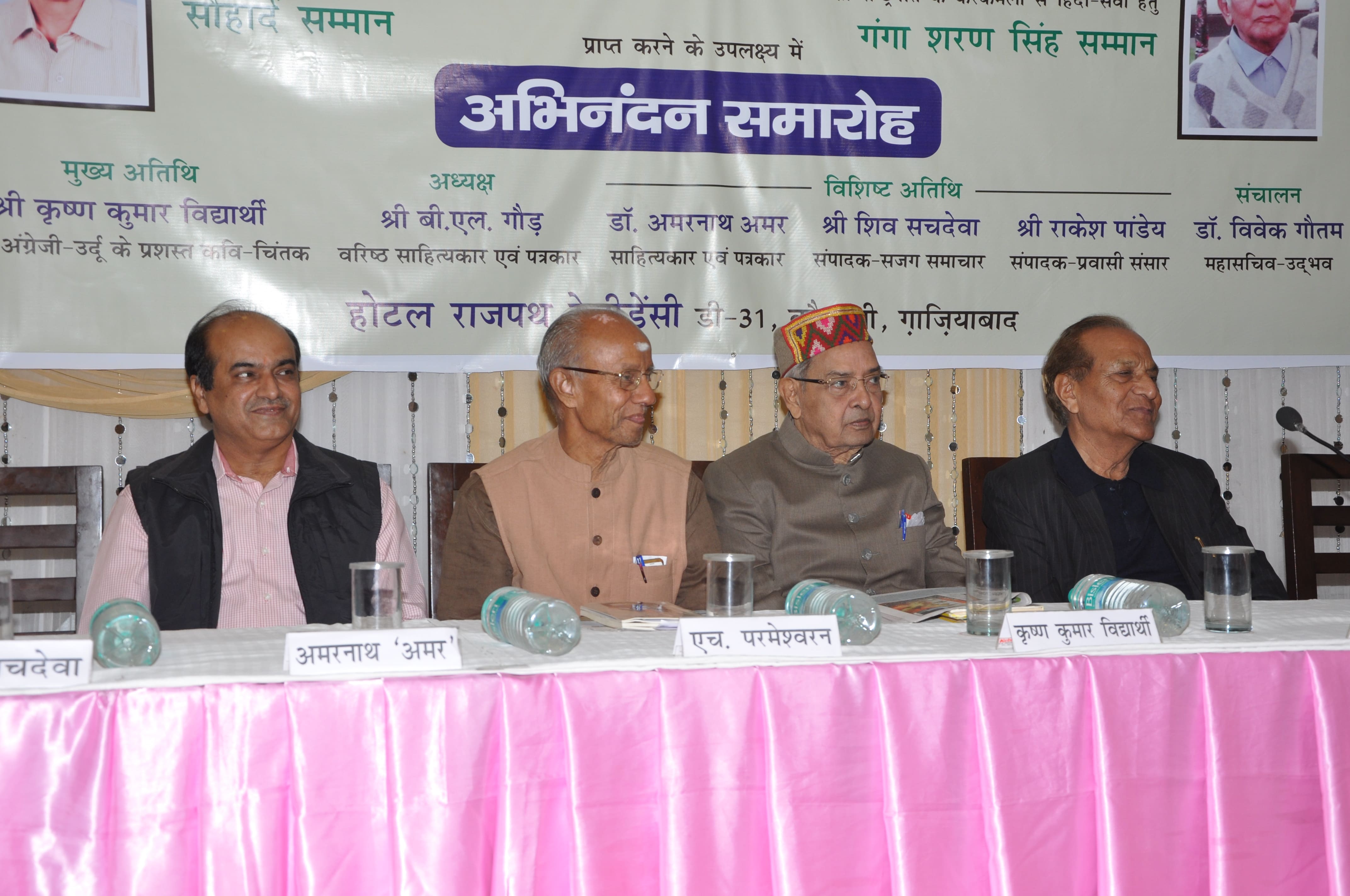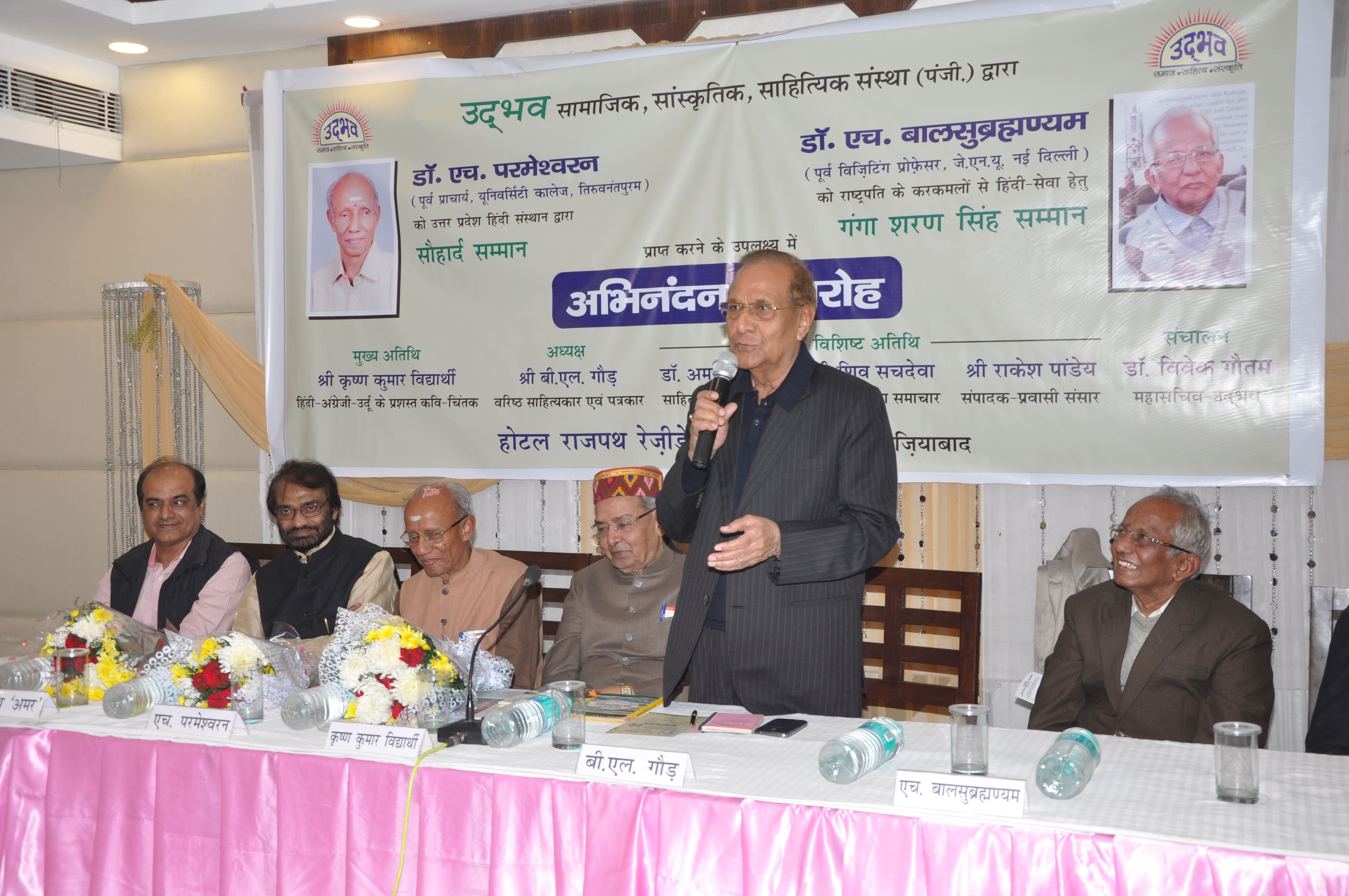 उदभव सामाजिक, सांस्कृतिक, साहित्यिक संस्था (पंजी.) द्वारा, डॉ. अच्पर मे श्वरन (पूर्व प्राचार्य, यूनिवर्सिटी कॉलेज, तिरुवनंत पुरम) को उत्तर प्रदेश संसथान द्वारा सौहार्द सम्मान, एवंडॉ. अच्बाल सुब्रमणियम (पूर्व विजिटिंग प्रोफेसर, जेऍनयू , नई दिल्ली ) को राष्ट्रपति के करकमलो से हिंदी सेवा हेतु गंगाशरण सिंह सम्मान , प्राप्त करने के उपलक्ष्य में अभिनन्दन समारोह।