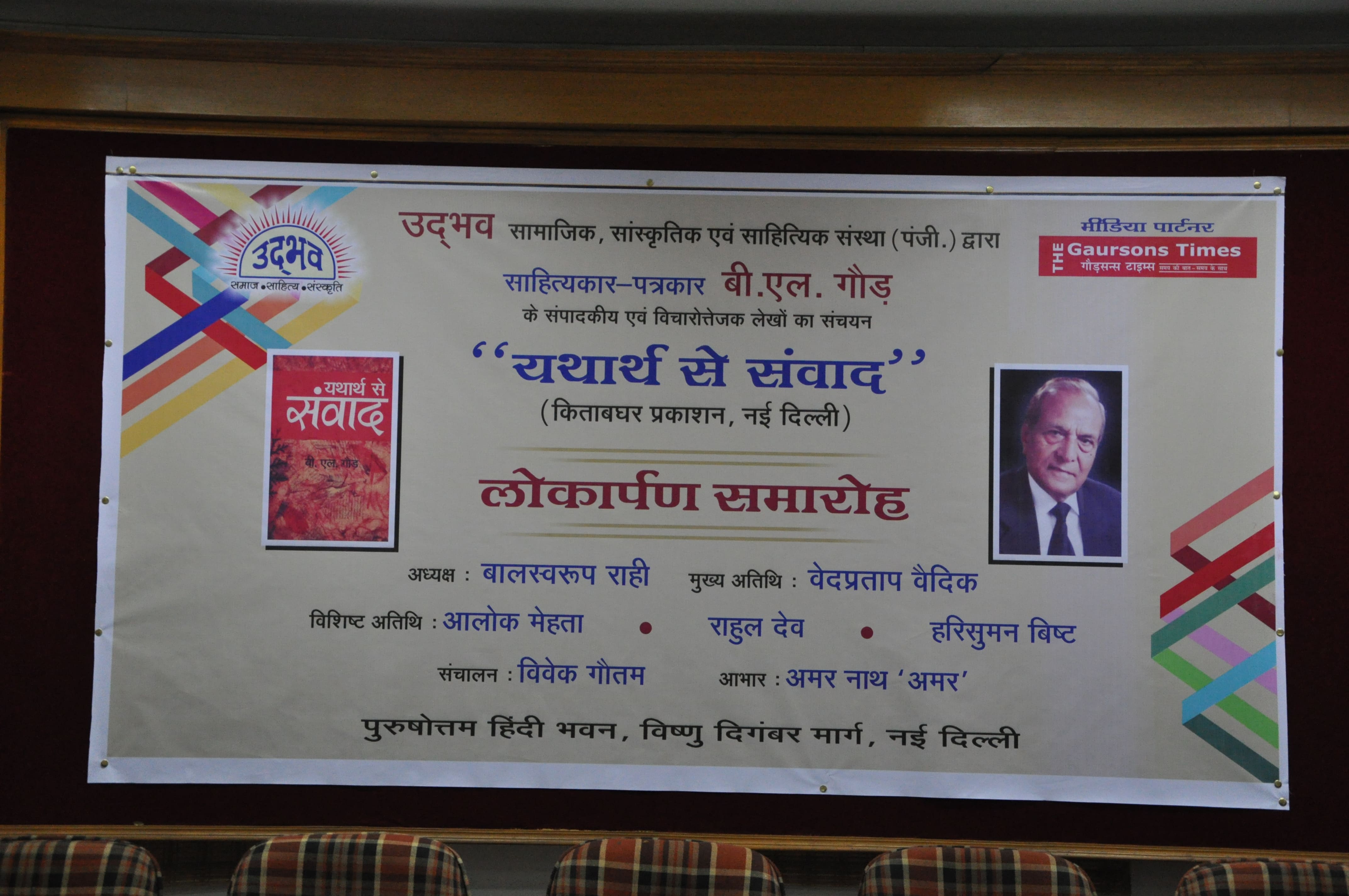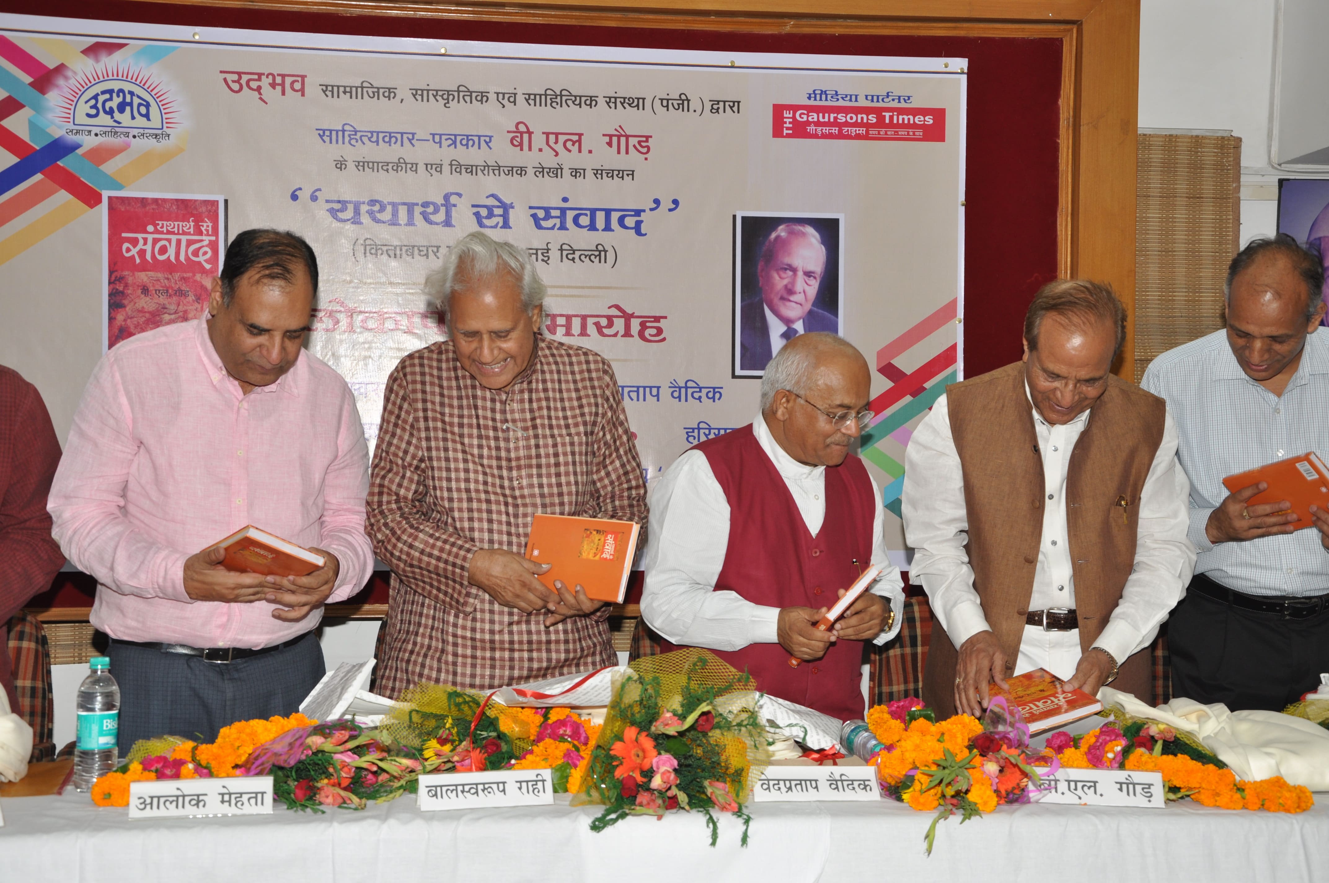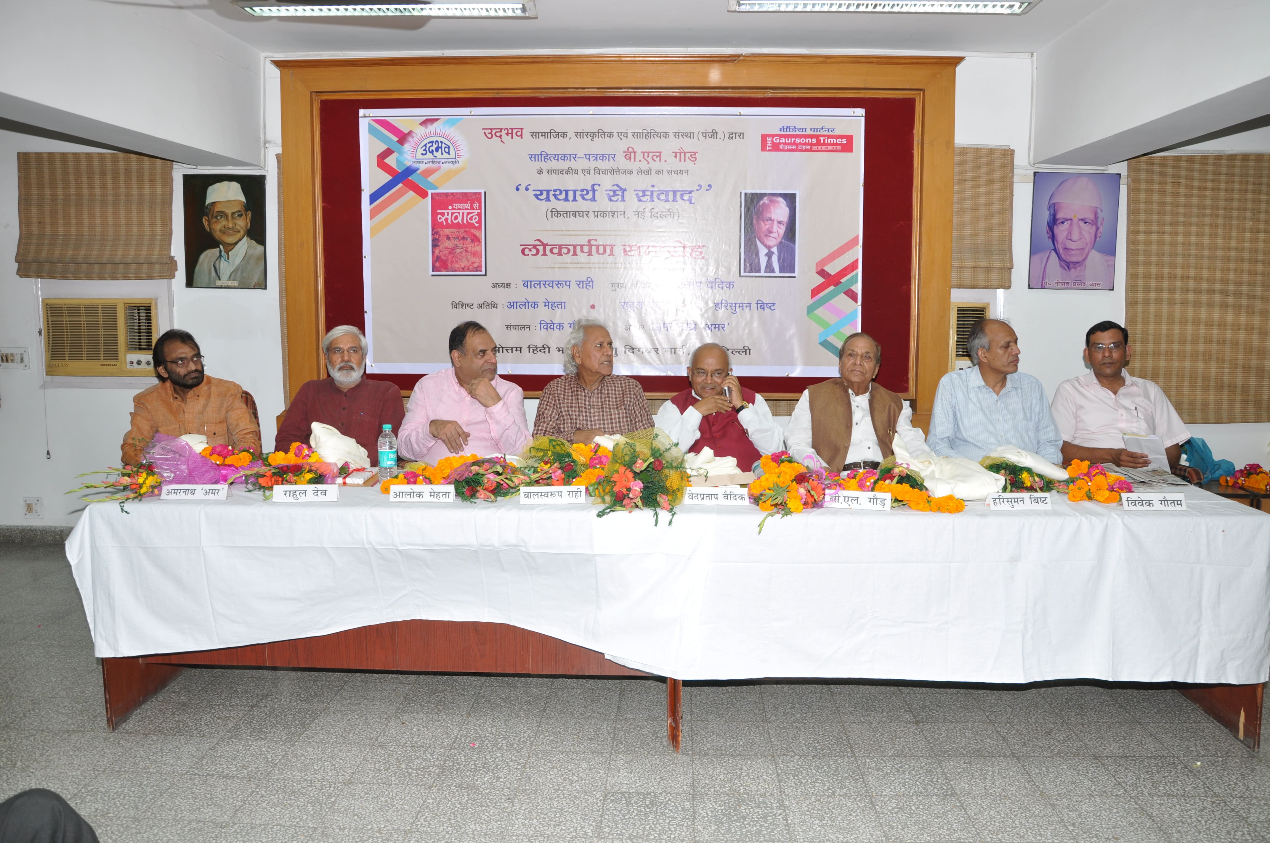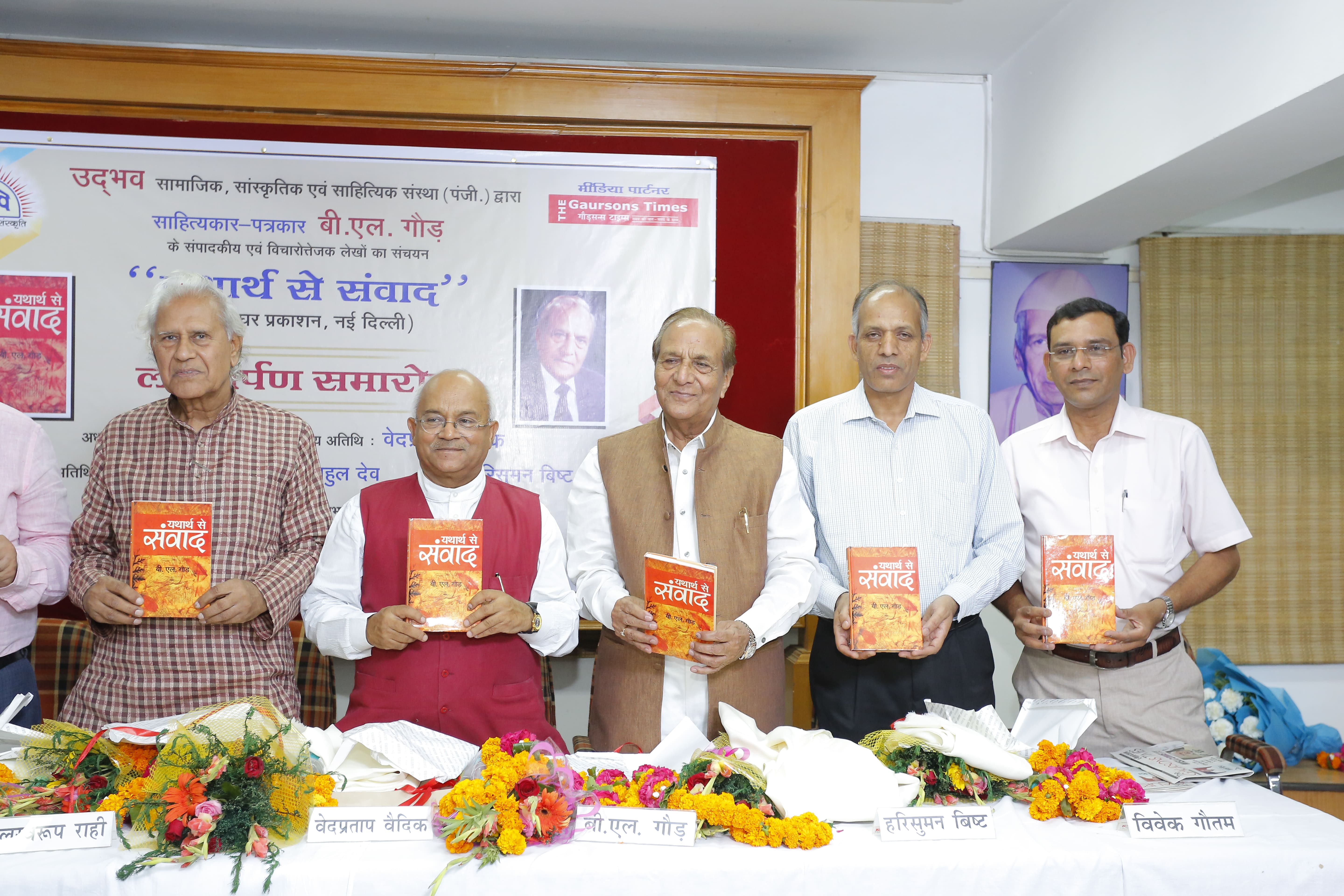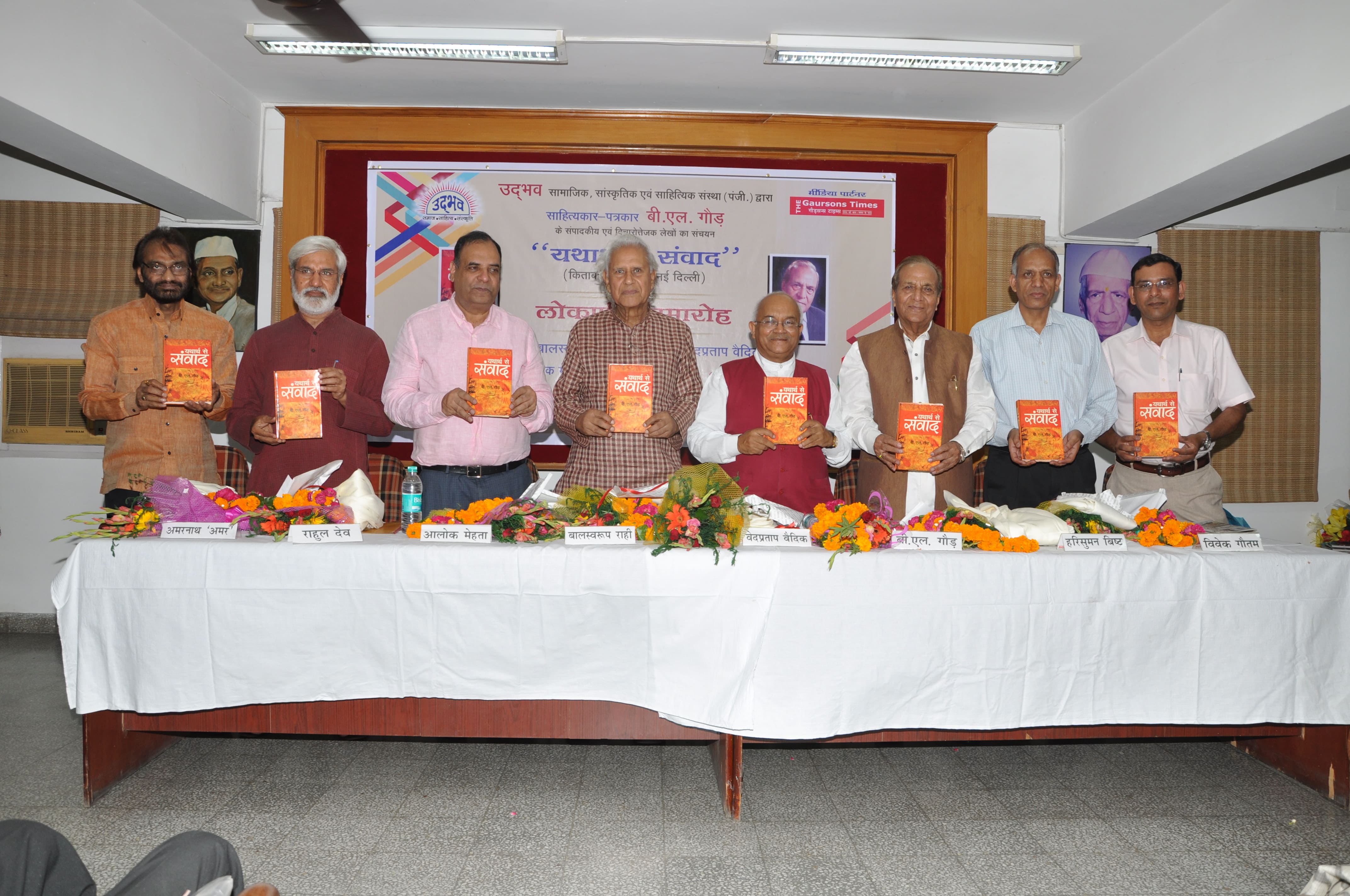 उदभव सामाजिक, सांस्कृतिक, साहित्यिक संस्था (पंजी.) द्वारा साहित्यकार एवं पत्रकार श्री बी.एल.गौड़ के सम्पादकीय एवं विचारोत्तेजक लेखो का संचयन “यथार्थ के संवाद” का लोकार्पण समारोह।